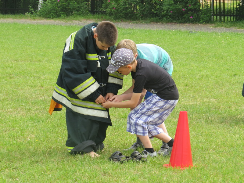На гэты раз ратавальнікі наведалі прышкольны аздараўленчы лагер ДУА «Гімназія №2 г. Салігорска», дзе з дзецьмі правялі пажарна-спартыўную эстафету. Дзеці спаборнічалі ў розных конкурсах: «Пажарныя вучэнні», «Мы вадой затушым полымя», «Апрані пажарнага», «Перанос пацярпелага», «Выклік пажарнай службы «101».