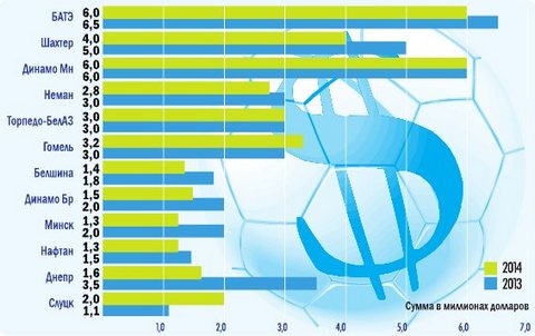 В сезоне-2014 по сравнению с прошлым годом бюджет БАТЭ уменьшился. Бюджет "Шахтера" — тоже уменьшился. Бюджет "Немана" — тоже. У минского "Динамо" и жодинского "Торпедо"-БелАЗ цифры остались на прежнем уровне. И только у "Гомеля", замкнувшего в 2013-м шестерку лучших клубов ЧБ, бюджет немного вырос. Сегодня очевидно: денег в элитном футбольном эшелоне стало меньше. Не сочтите за труд, пересчитайте и убедитесь в этом сами. Pressball.by подбил суммы, с которыми 12 клубов высшей лиги планируют прожить сезон-2014.