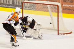 Лишь одну заброшенную шайбу увидели зрители во втором четвертьфинальном противостоянии "Гомеля" и "Шахтёра".