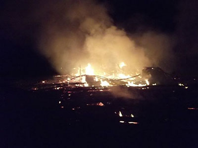 В результате пожара дощатые сараи 15х25м, крыша шиферная уничтожены полностью.