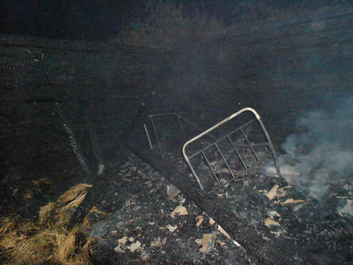 В результате пожара уничтожен деревянный сарай 3х8 м. В сарае хранилась хозяйственная утварь.
