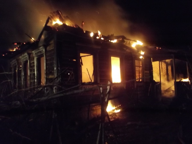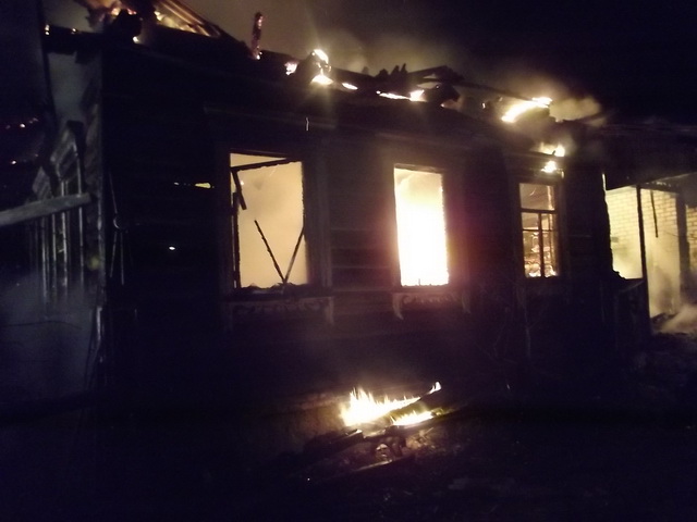 По прибытии спасателей к месту происшествия деревянный дом горел открытым пламенем, кровля обрушилась.