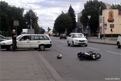 Возле центральной площади Слуцка скутерист испугался автомобиля и упал