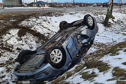 Легковушка сначала наехала на дерево, а после и вовсе легла на крышу