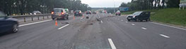 10 июля около 08.35 на 29 км автодороги Минск-Микашевичи, вблизи д. Вишневка Минского района, 28-летний водитель житель г. Слуцка, двигаясь на автомашине Фольксваген Транспортер в направлении г. Слуцка, совершил попутное столкновение с трактором CASE под управлением 41-летнего тракториста-машиниста, после чего водитель автомашины Фольксваген выехал на вторую полосу движения, где совершил столкновение с двигавшимся по ней в попутном направлении автомобилем Ауди А-6 под управлением 53-летнего водителя.