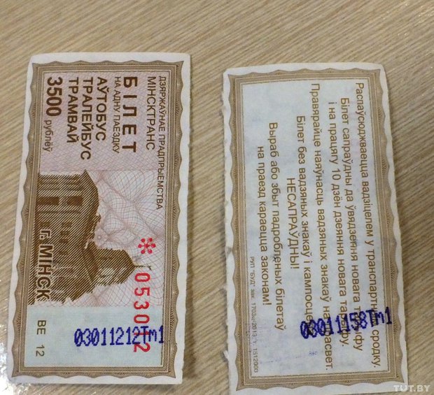 Компостер проставляет на билете дату и время проезда, а также - номер маршрута. Приглядевшись, можно заметить и по 2 дырочки на каждом талоне. Однако представитель "Минсктранса" заверил, что "рисунок" отверстий больше значения не имеет: "Просто билет фиксируется, чтобы не сполз, отсюда и отверстия. Значение для проезда имеет только надпись, которая появляется на проездном документе".