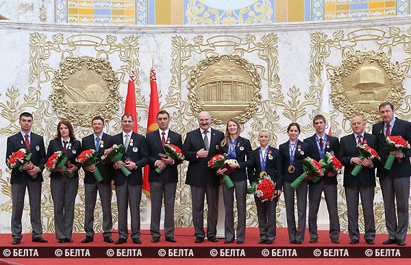 Медалистов Игр-2014, а также их тренеров на родной земле ожидал теплый прием и самые высокие государственные награды. Дарье Домрачевой присвоено звание Героя Беларуси.