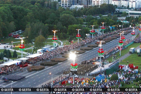 По традиции в День Независимости 3 июля возле стелы «Минск - город герой» в белорусской столице состоялся военный парад и театрализованное шествие. Однако впервые эти мероприятия проведены в вечернее время перед началом гала-концерта.
