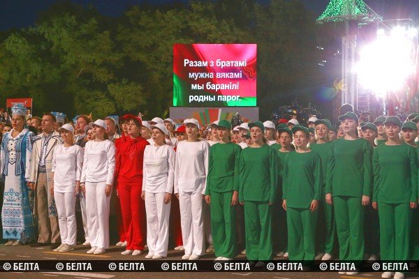 Сотни тысяч людей в Минске, областных и районных центрах приняли участие в патриотической акции "Споем гимн вместе". После исполнения гимна небо украсил салют.