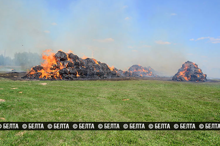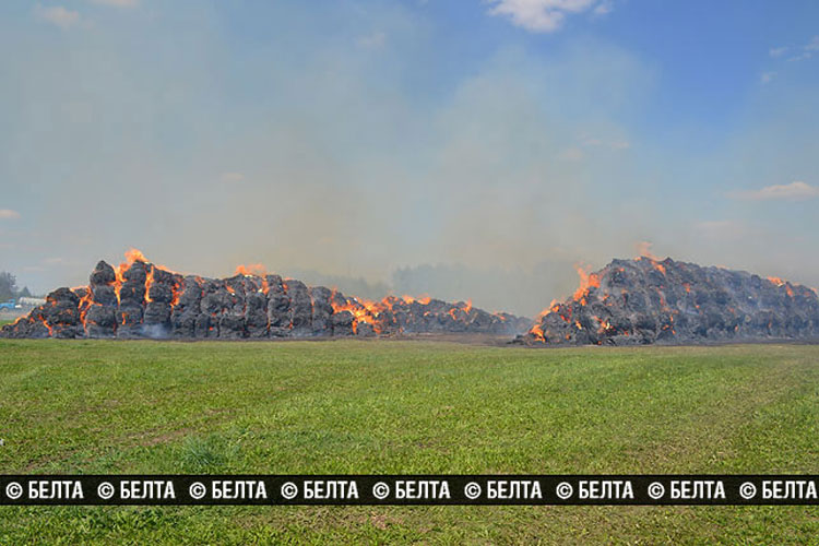 Около 300 т прессованной соломы горит под Горками, сообщает корреспондент БЕЛТА.