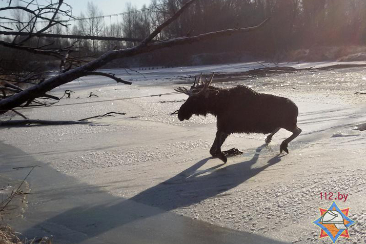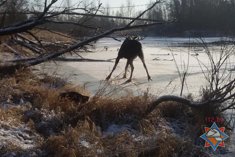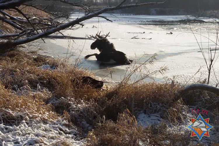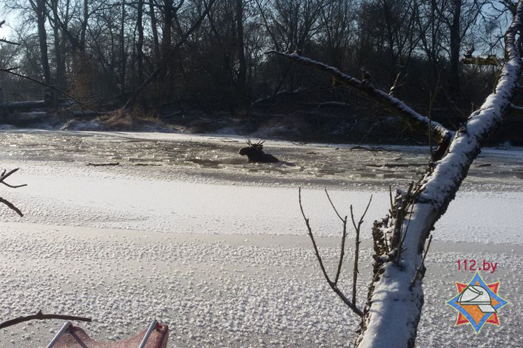 Днем 4 января в Брестское областное УМЧС поступило сообщение, что возле деревне Теребунь Брестского района на реке Лесная в полынью провалился лось. Несмотря на небольшую глубину, животное стояло в воде и самостоятельно выбраться на берег не могло. К месту происшествия было направлено подразделение спасателей-водолазов пожарного аварийно-спасательного отряда.