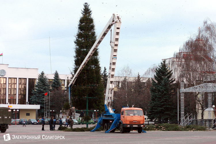 <<Видеофакт. На площади Солигорска началась установка новогодней елки>>