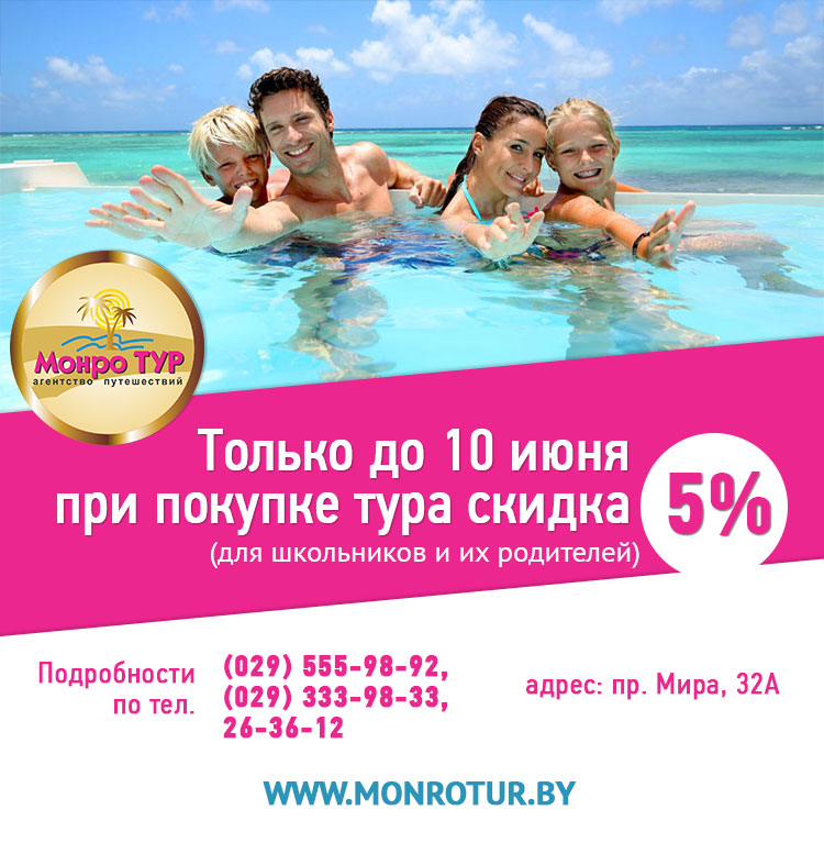 После успешной сдачи экзаменов обратись в "Монро-тур" и тебе подберут бюджетный отдых в теплых странах. Хороший отдых просто необходим перед новым учебным годом.