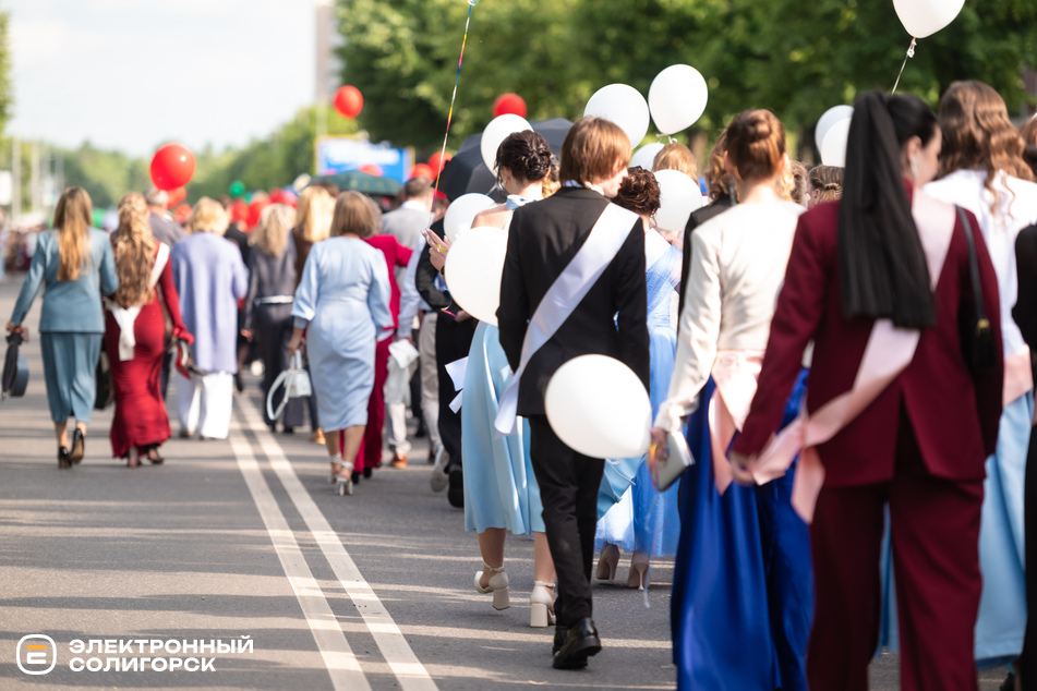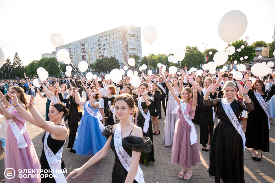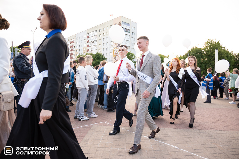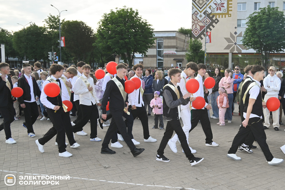В Солигорске на Центральной площади состоялся выпускной бал. Стартовал он с традиционного шествия выпускников.