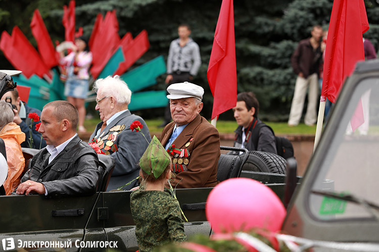 Возглавили праздничную колонны ветераны Великой Отечественной войны в стильных открытых автомобилях.