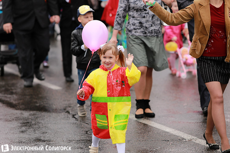 Сгустившиеся над городом тучи практически с началом шествия разродились водными струями. В одночасье площадь превратилась в скопление разноцветных зонтов, которыми все участники праздничного мероприятия защищались от непогоды.