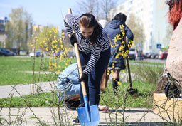 "Аллея матери" преображается к празднику. Солигорчанки посадили там деревья