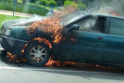 Происшествие в Солигорске. Средь бела дня загорелся автомобиль