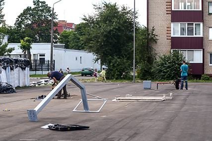 Продолжаются работы по реконструкции стадиона ГУО "Средняя школа № 2 г. Солигорска". Напомним, ремонт начался 25 мая 2020 года. Вчера начался этап установки конструкций для спорта и игр.