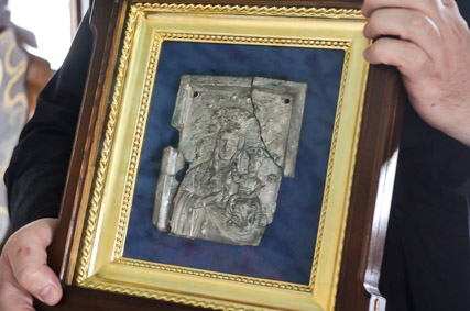 Отправляясь на прогулку по лесу около деревни Пузичи Солигорского района, россияне Александр Велижев и Наталья Радикова и думать не могли, что обнаружат на старом дубе... икону Божией Матери. Это случилось осенью 2019 года. Сейчас икона находится в Покровском храме агрогородка Хоростово. О судьбе этой и других святынь шла речь на встрече в кафедральном соборе Рождества Христова. За круглым столом собрались представители Белорусской Православной Церкви и музейного сообщества Солигорского района.