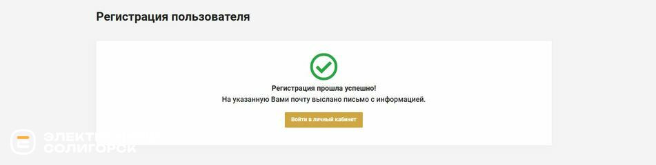Перейдя по ссылке, вы увидите сообщение об успешном окончании регистрации, откуда можно перейти в "Личный кабинет".