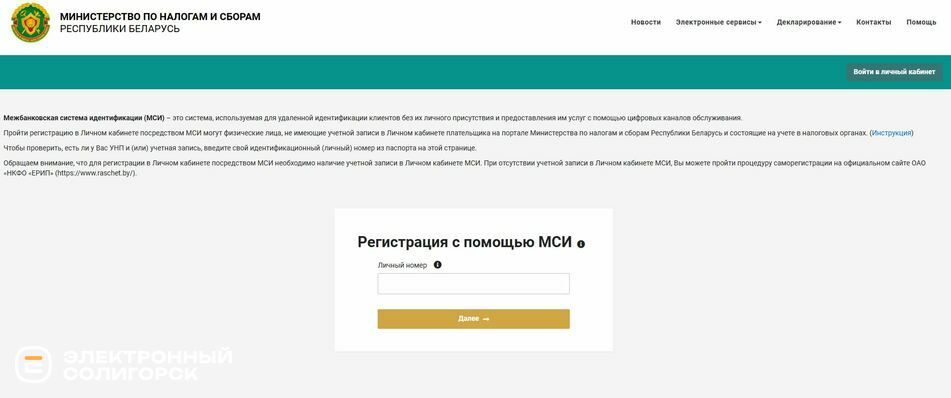 - пользователь состоит на учете в налоговых органах (физическому лицу присвоен УНП);