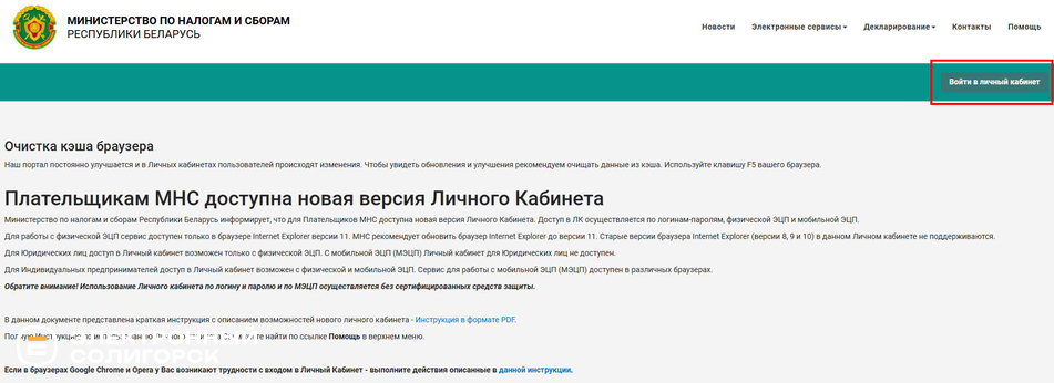 На сайте Министерства по налогам и сборам Республики Беларусь на главной странице есть раздел "Личный кабинет плательщика".
