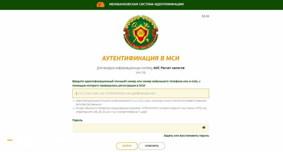 Вас перенесет в новое окно "Межбанковской системы идентификации", где вам нужно будет вновь ввести идентификационный номер вашего паспорта, а также пароль.