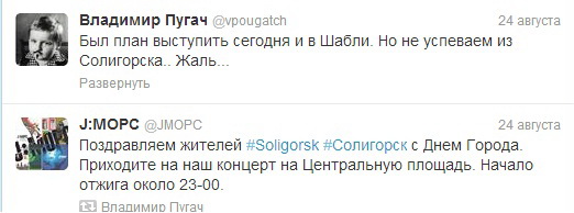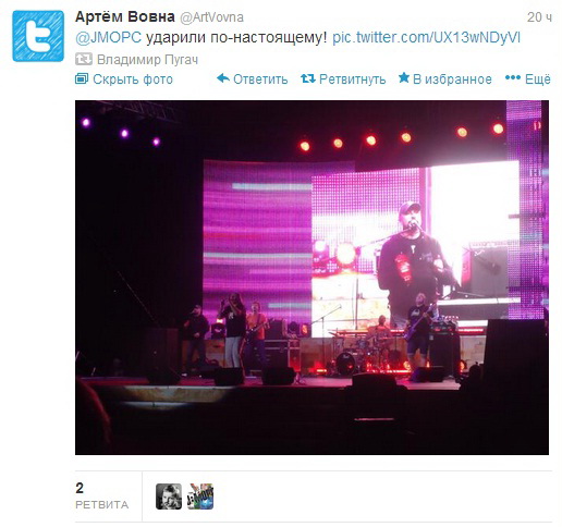 J:Морс, закрывавшие субботнюю концертную программу, и их фронтмен Владимир Пугач, например, среди тех, кто достаточно серьезно активничает в твиттере. Причем не только сами пишут, но и ретвитят сообщения поклонников.