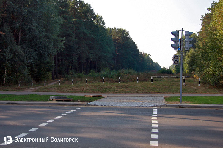 Четвертый светофор - у лесной дороги, ведущей к родникам.