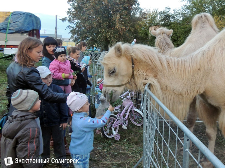 А дело вот в чем. В Солигорск приехал с гастролями очередной цирк-шапито. Пока идет установка цирковой арены и обустройство территории, для животных тут же рядом сооружены загончики. Экзотические постояльцы в свободном доступе тут же стали центром внимания детишек, которые вволю гладили и кормили четвероногих гостей города. Да и многим взрослым также было интересно понаблюдать за двухгорбыми обитателями пустынь, покормить травой из рук ламу, сделать уйму фотографий с мохнатыми пришельцами.
