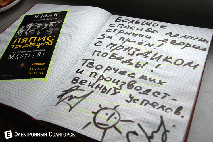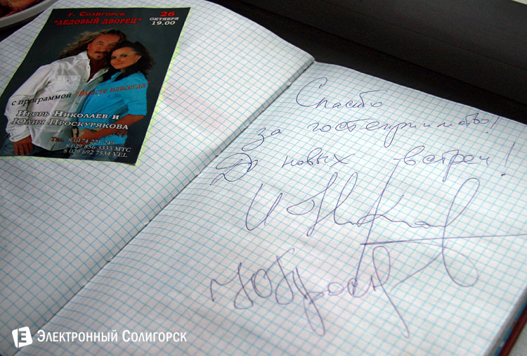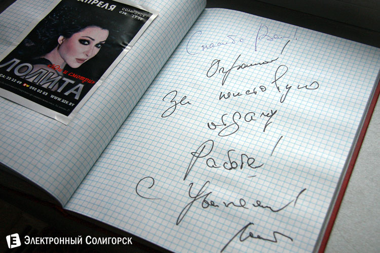 В нашем городе проводится достаточное количество концертов. Причем, в Солигорск приезжают звезды не только белорусского масштаба, но и зарубежные знаменитости (в основном, российские). "Электронному Солигорску" стало интересно, какие записи остаются после их визитов в "Книгах почетных гостей" солигорских заведений.