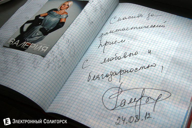 "Спасибо за фантастический прием. С любовью и благодарностью, Валерия"