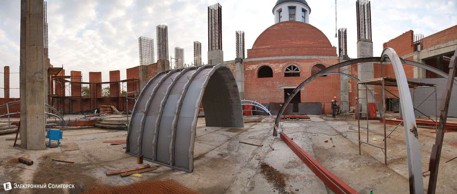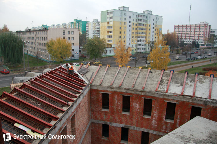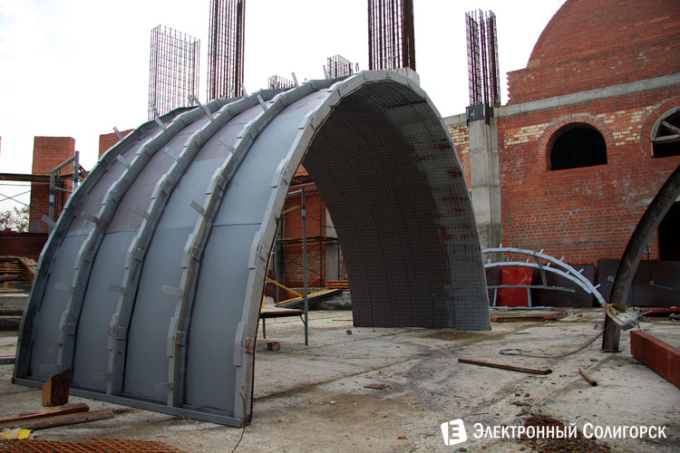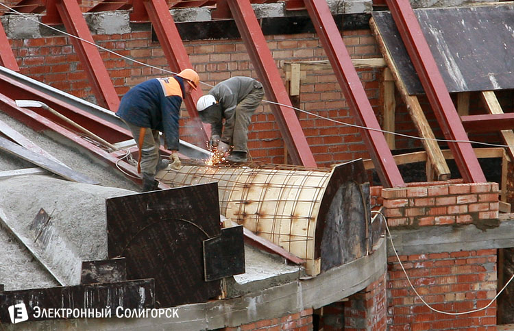 Сейчас ведутся активные работы по установке сводов на крыше.