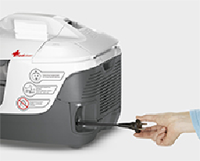 Особо стоит отметить удобство работы с аква-фильтром, который легко очищается и ополаскивается под краном. Он удобен не только по сравнению с традиционными мешками, но и с аква-фильтрами других конструкций.
