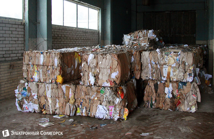 Непригодные для повторного использования отходы затем вывозится на полигон ТБО д.Дубеи. Отобранное сырье при помощи погрузчика доставляется на гидравлический пресс, где прессуется и упаковывается в тюки, которые уже отправляются заводам-переработчикам.
