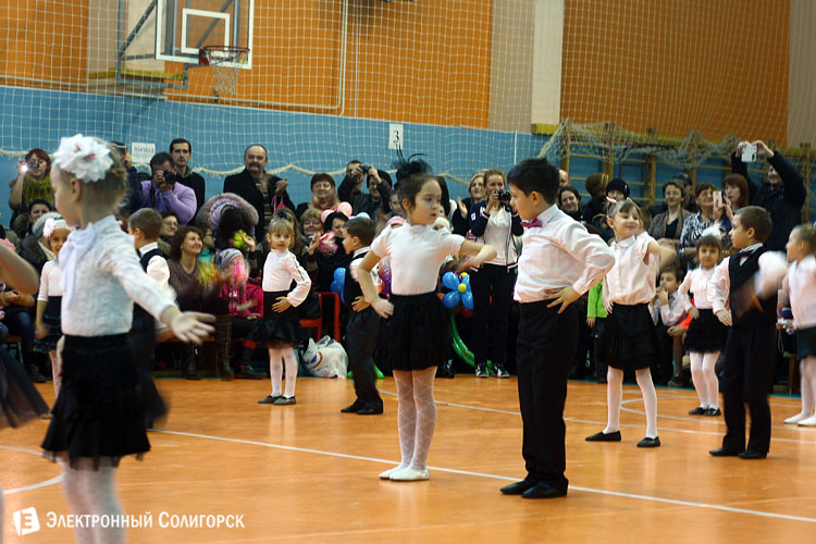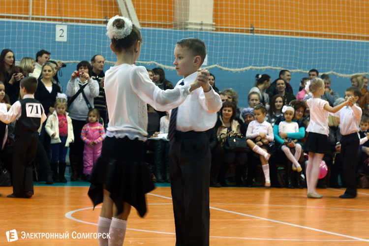 Детский смотр-конкурс по спортивным бальным танцам "Рождественская фиесточка-2013" прошел в универсальном спортивном зале солигорского Спортивно-зрелищного комплекса в воскресенье. Корреспонденты "Электронного Солигорска" побывали на этом мероприятии и понаблюдали за выступлением танцевальных пар. Для многих из участников подобного рода событие - первое в жизни. Все конкурсанты были разделены на две большие группы: первого и второго года обучения. Всего за время "Рождественской фиесточки" в ней поучаствовало порядка 90 пар юных танцоров. Взрослые, в общем-то, тоже не сидели сложа руки и активно поддерживали своих детей. Тем более, что об этом постоянно напоминал тренер этих детей и ведущий конкурса Александр Дудик. Помимо этого, он наряду с судьями и при активном содействии родителей выполнял функции этакого регулировщика, потому что детвора то забывала собственные номера и не сразу выходила на площадку, то кучковалась на ней всей толпой в одном углу, не давая друг другу развернуться. Выглядело это чрезвычайно забавно. Особенно учитывая то, что все без исключения малыши были нарядно, по-взрослому, одеты и зачастую принимали ну очень серьезный вид.