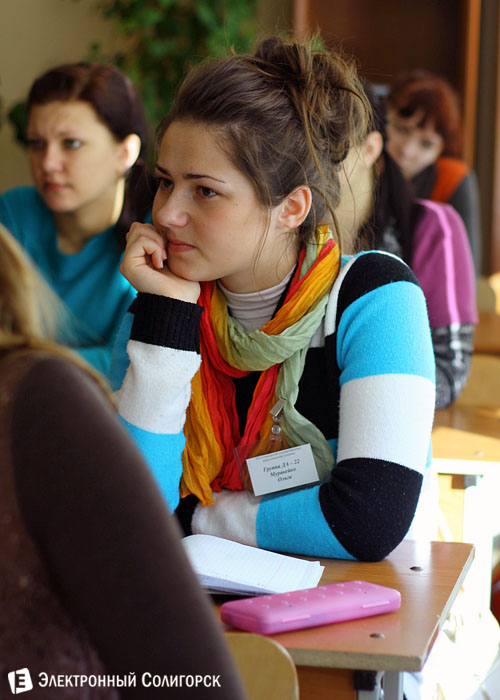 Елена Николаевна, являясь специалистом в гендерной проблематике, говорила с учащимися об отношениях мужчины и женщины, а сама встреча была озаглавлена не иначе, как "Пришло время любить?". Жизненные приоритеты, заложенные природой для каждого пола, поведенческие особенности и их осознание прошли лейтмотивом через всю беседу. В заключение встречи психолог ответила на вопросы аудитории о том, например, кого выбрать из двух равновлюбленных в тебя парней или почему мужчины изменяют.