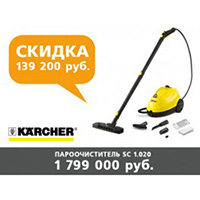 Двумя "флагманами" нашего снижения цен мы выбрали пароочистители KARCHER SC 3000 и KARCHER SC 1020. В дни распродажи они предлагаются по цене в 1 999 000 и 1 799 000 соответственно.