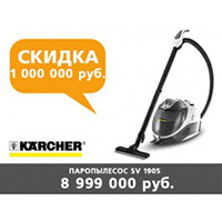 Кроме пароочистителей мы снизили цены и на паропылесосы. Так, мы предлагаем приобрести со скидкой аппарат KARCHER SV 1905. Этот великолепный паропылесос идеально подойдет для больших квартир и частных домов. Судите сами: мощный нагреватель в 2300 Вт подает пар под давление в 4 бара. Паропылесос оснащен не только традиционными фильтрами, но и специальными HEPA-фильтрами – они настолько хороши, что воздух, который выходит из пылесоса – намного чище того, который в него попал! При этом KARCHER SV 1905 позволяет собирать как влажный, так и сухой мусор без замены фильтров или баков. Цена снижена до 8 999 000 белорусских рублей.