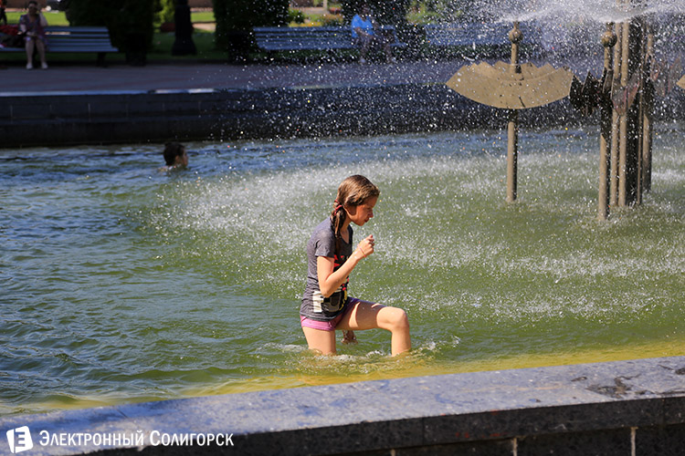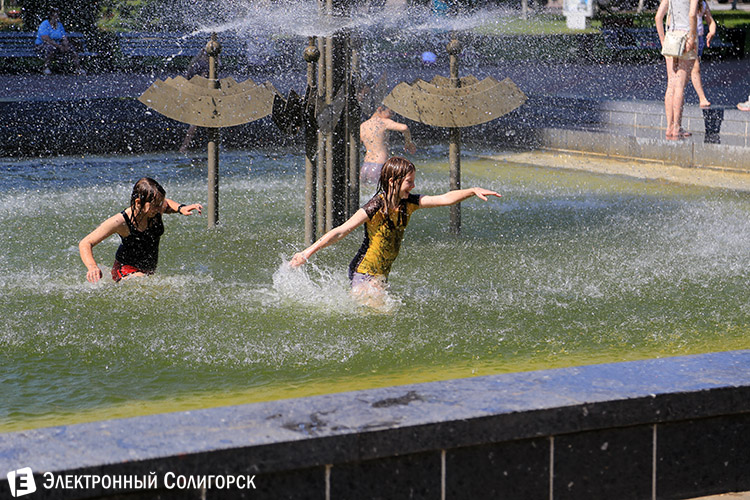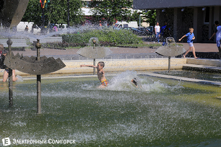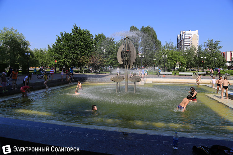 По-настоящему летняя жара нахлынула на Солигорск как-то неожиданно после периода затяжных ливней. А где самое лучшее место, чтобы легче перенести зной? Конечно же, фонтаны! Правда, невозбранно купаются в них только дети, да по определенным дням - десантники. Остальным же просто остается смотреть со стороны и по-светлому завидовать, вспоминая свои детские купания.