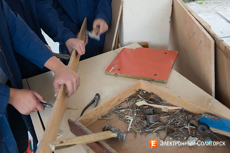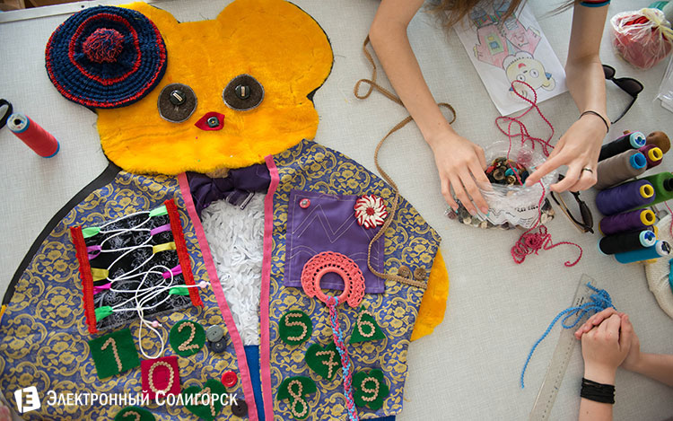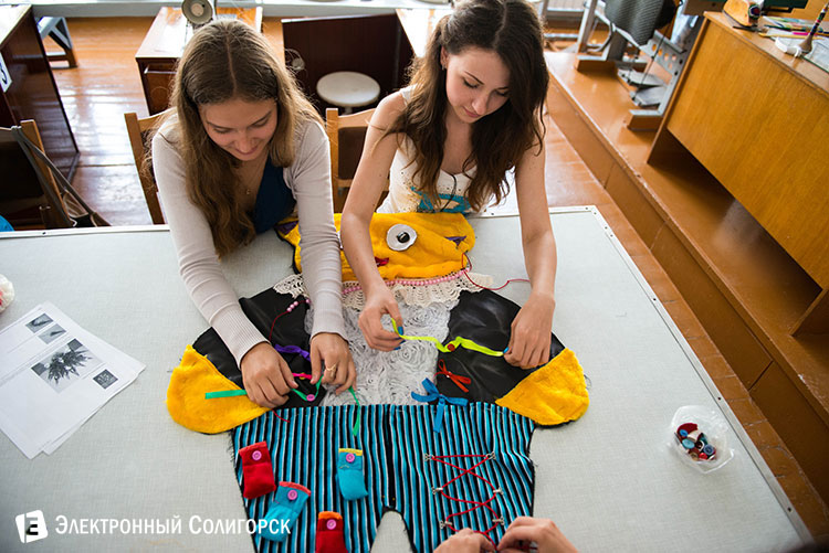 Девочки здесь занимаются пошивом развивающих игрушек и полотенец. Мальчики занимаются мелкими ремонтными работами.