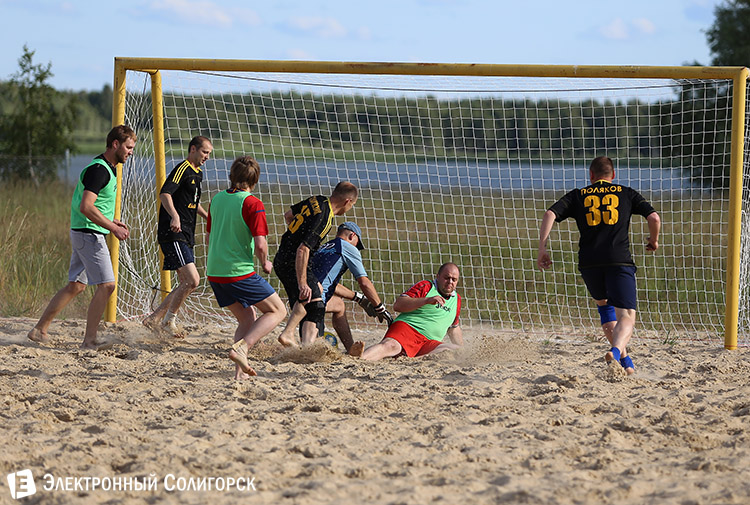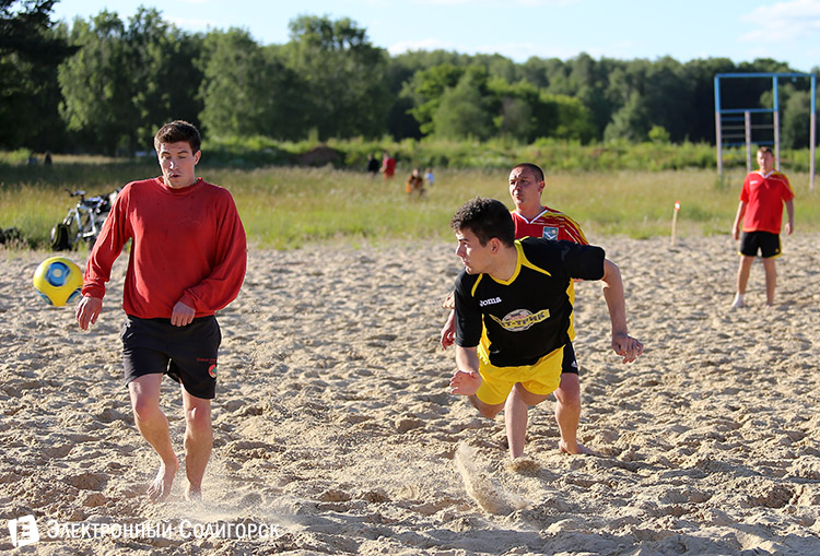 Пока на стадионах Бразилии разворачиваются жаркие футбольные баталии среди лучших команд земного шара, на солигорском пляже тоже кипят нешуточные страсти вокруг мяча. Во вторник, 16 июня состоялся второй игровой день первого Чемпионата Солигорска по пляжному футболу.