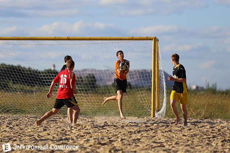 Следующая пара - команды Института горной электротехники и автоматизации и "Хет-трик". Сильнее оказались пляжные футболисты из ИГЭиА - 3:2.