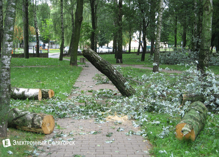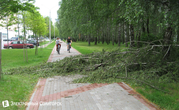 Пронесшийся 12 июля над Солигорском ураган оставил на улицах города свои деструктивные следы. И если сегодня вода с затопленных участках постепенно уходит, то вот несколько десятков вырванных силой ветра деревьев, лежащих на улицах, являют одну из главных тем для пересудов горожан.