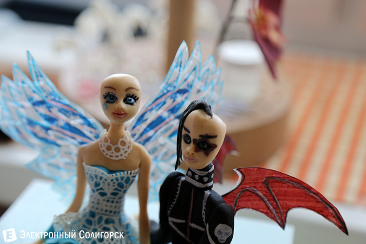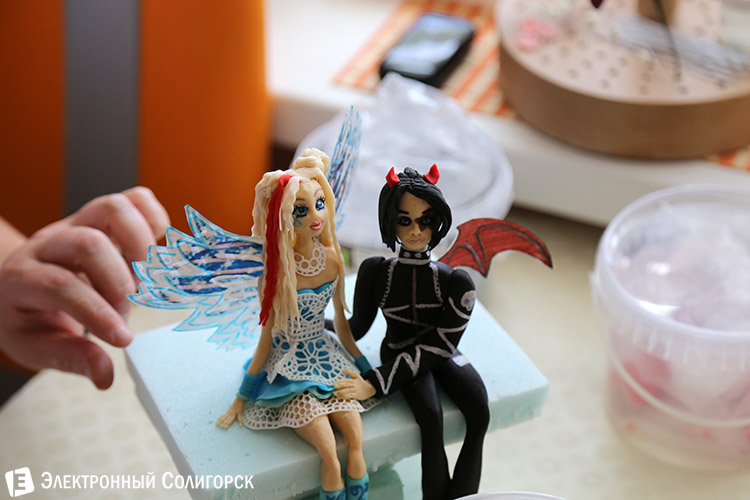 В момент нашего визита Наталья как раз начала процедуру создания "шевелюр" для персонажей торта - фигурки ангела и демона, которые до "парикмахерских процедур" выглядели вот так.