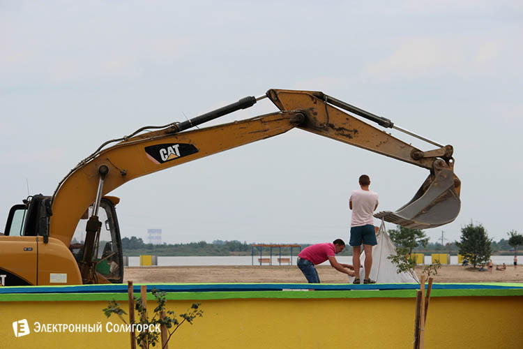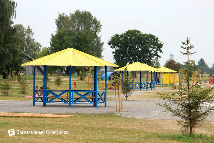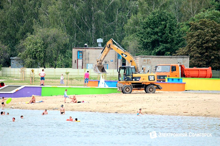 Корреспонденты "Электронного Солигорска" продолжают следить за ходом благоустройства Детского пляжа в Солигорске. День за днём излюбленное место отдыха среди солигорчан приобретает новые черты. На Детском пляже появились скамейки, навесы, под которыми можно спрятаться от палящего солнца, дорожки выложенные тротуарной плиткой, питьевой фонтан и дополнительные кабинки для переодевания. Благоустройство коснулось всей береговой линии водоёма. Активно ведутся работы по монтажу системы циркуляции воды.