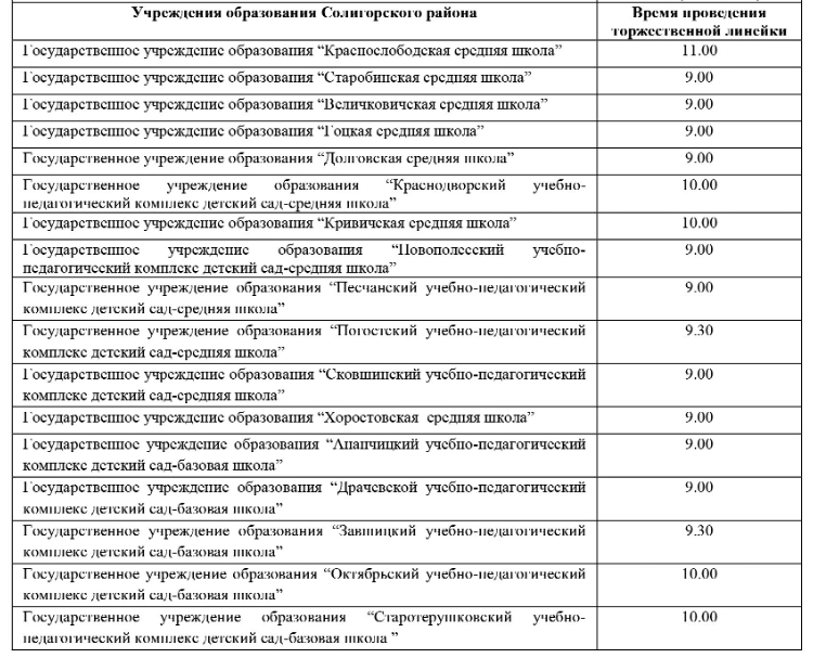 На сайте отдела образования, спорта и туризма Солигорского райисполкома уже появился график торжественных линеек.