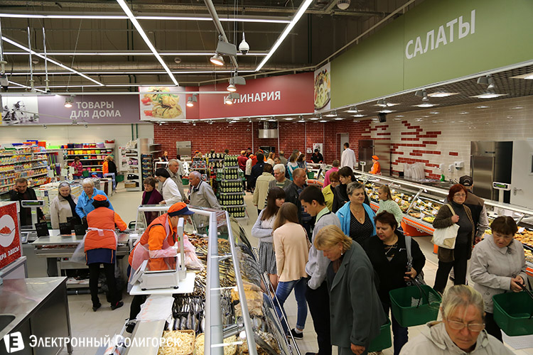 И вот он долгожданный момент! "Корона" открыта, доступ в огромное оранжево-белое здание получен. Людской поток мгновенно хлынул в торговый зал, принявшись с неутомимым любопытством изучать просторы нового крупного магазина.