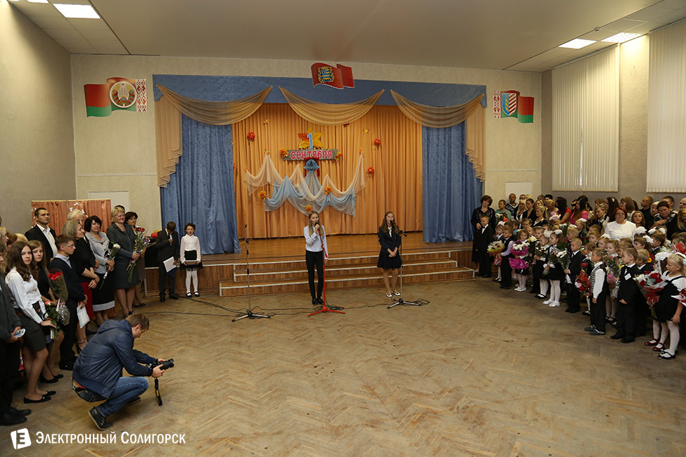 Торжественная линейка, посвященная началу нового учебного года, прошла и в СШ №3 г. Солигорска. Из-за сюрпризов погоды торжественная часть состоялась в актовом зале школы.